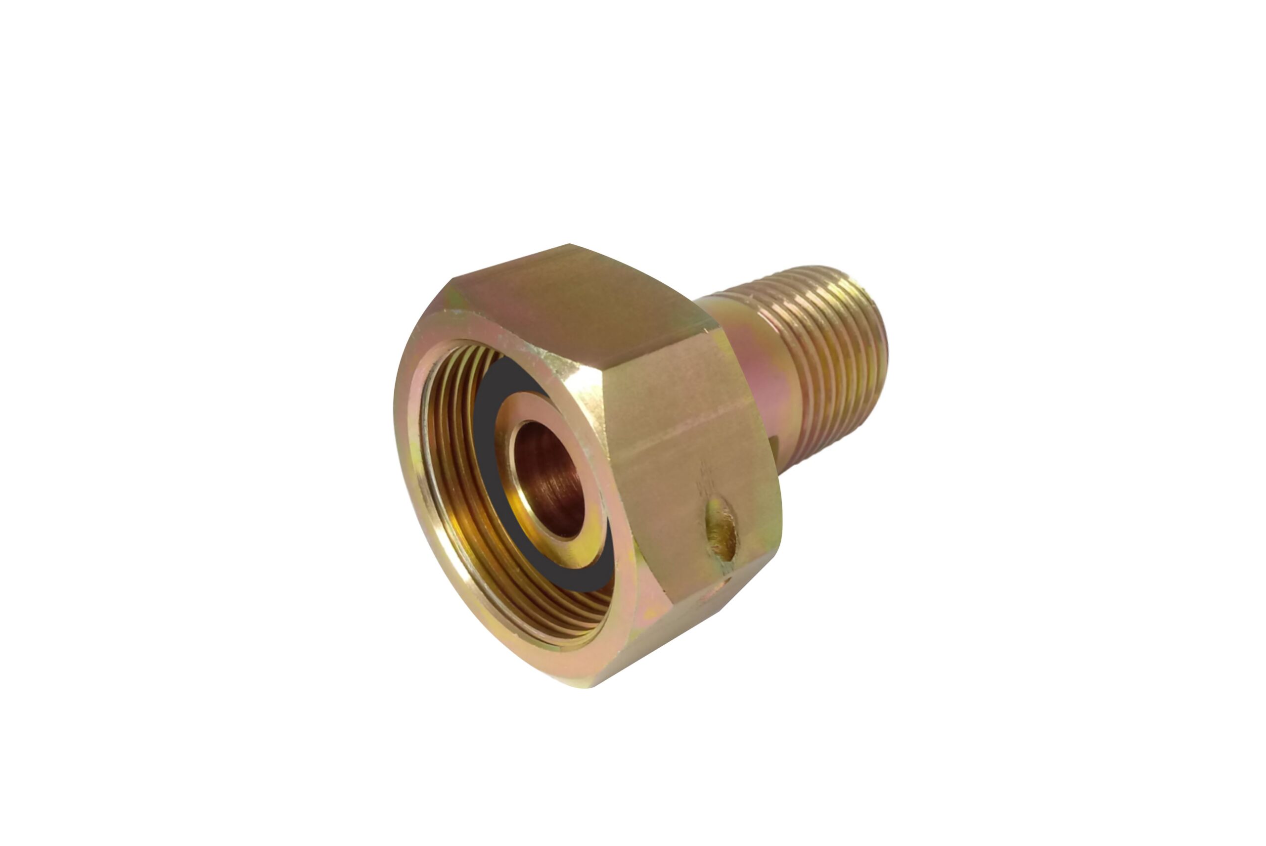 Elemento de conexión, que permite empalmar los medidores mediante el uso de accesorios roscados con la tubería y/o para bloquear el paso de gas. Fabricado con materiales resistentes a la corrosión Acero 12L14 con revestimiento zincado e irisado para el vástago y la tuerca.